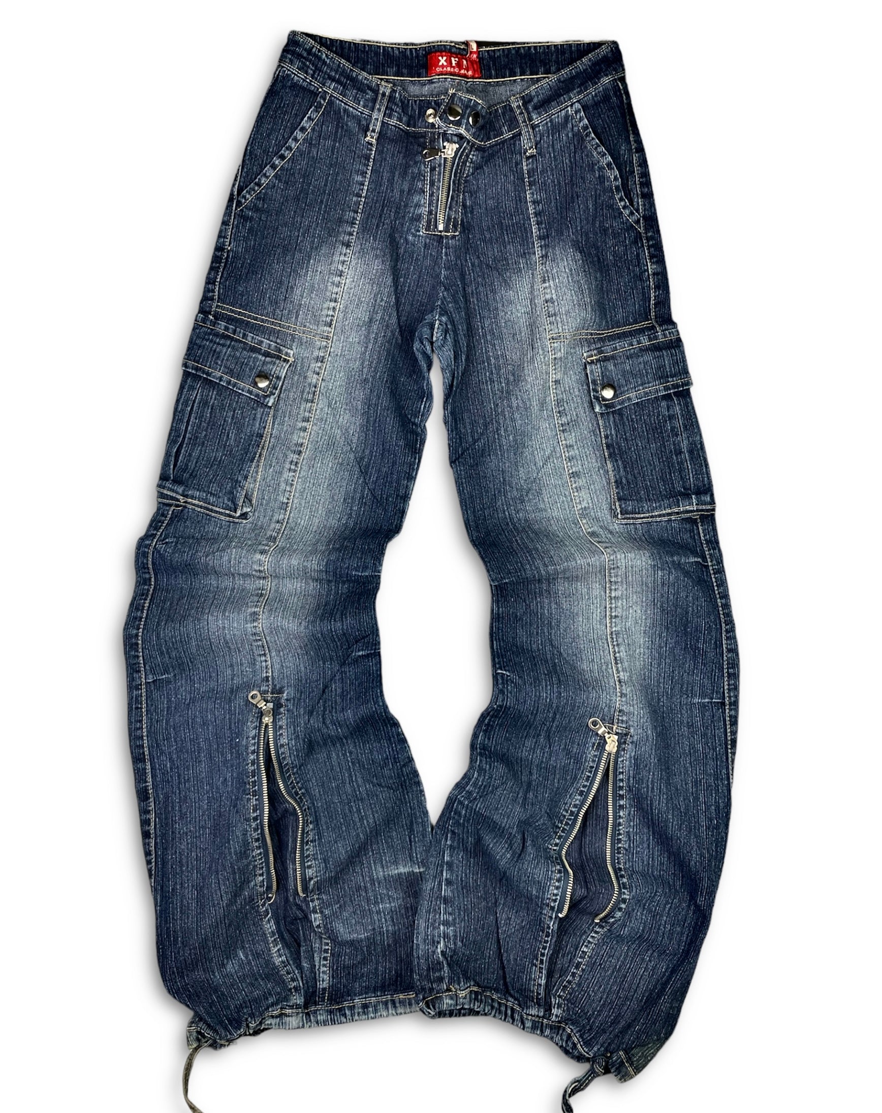 Vintage Y2k Zip Up Baggy Cargo Denim